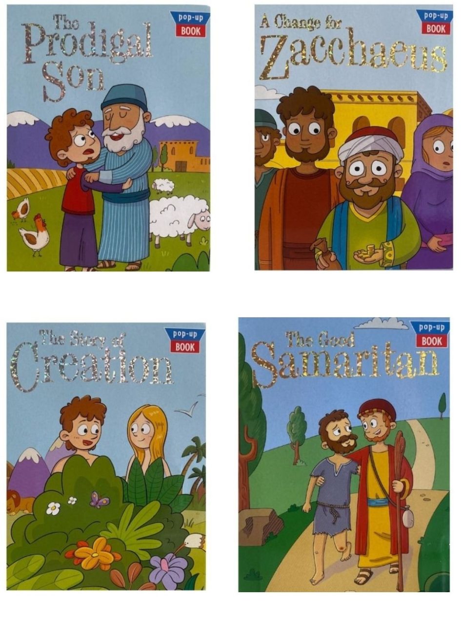 Set of 4 Pop-up Books – The Story of Creation, Prodigal Son, Good Samaritan, and Zacchaeus