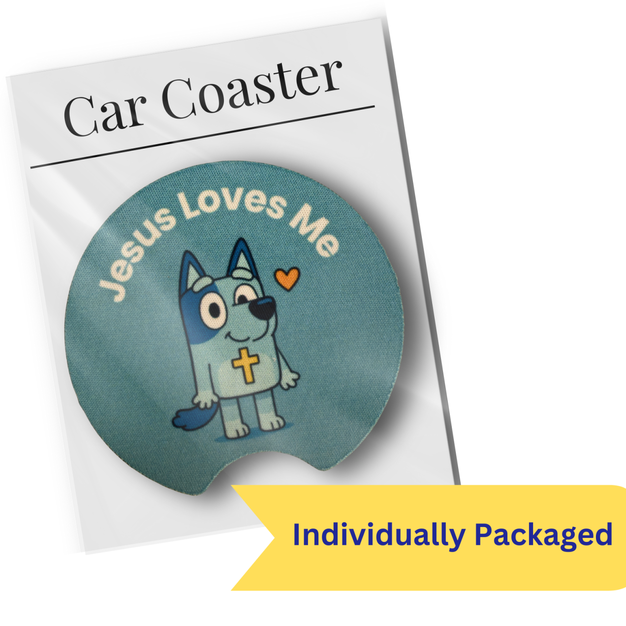 Birthday Party Favors – Bluey Jesus Loves Me Car Coasters for kids– Christian Gifts