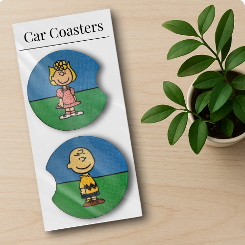 Charlie Brown & Sally Car Coasters – Brother & Sister Set