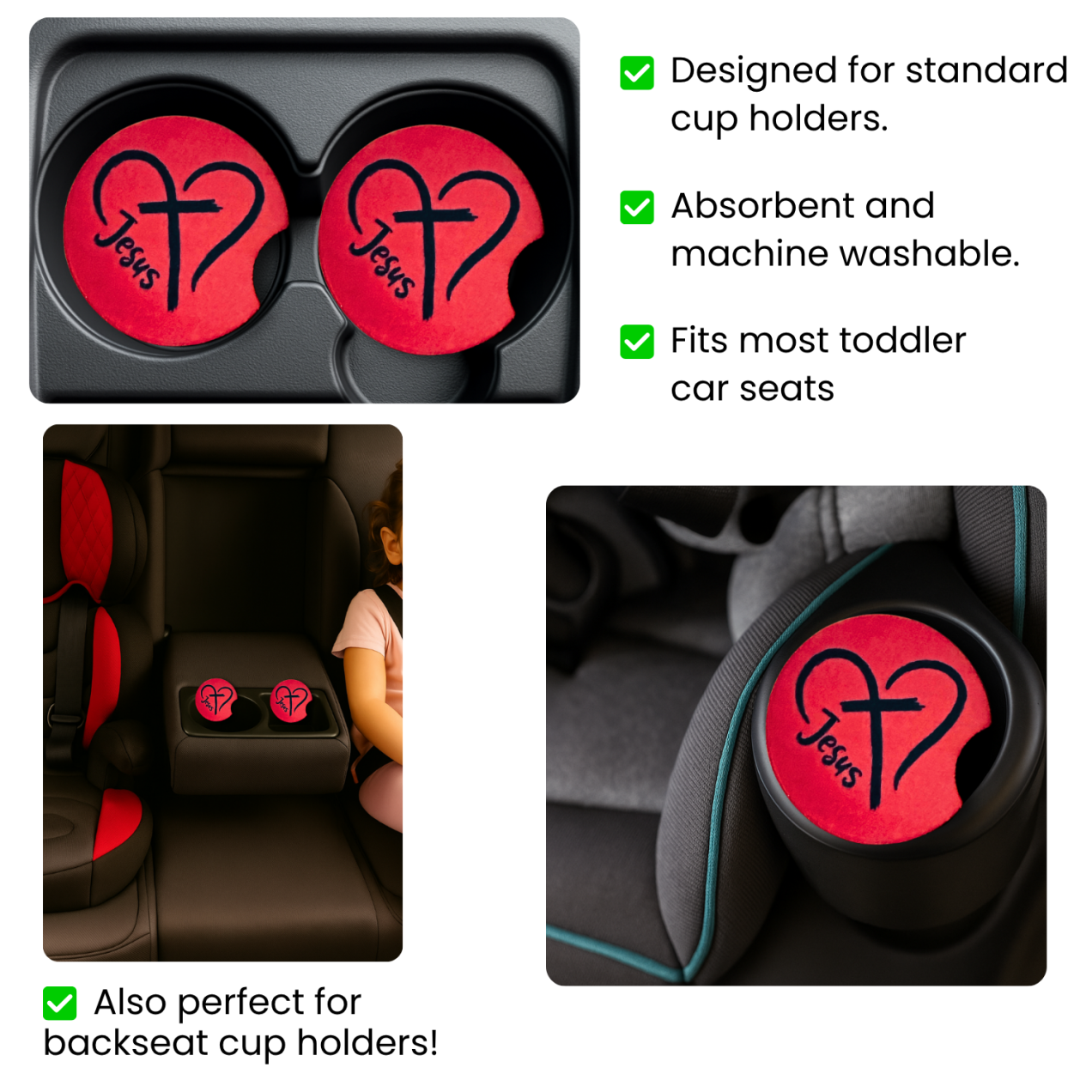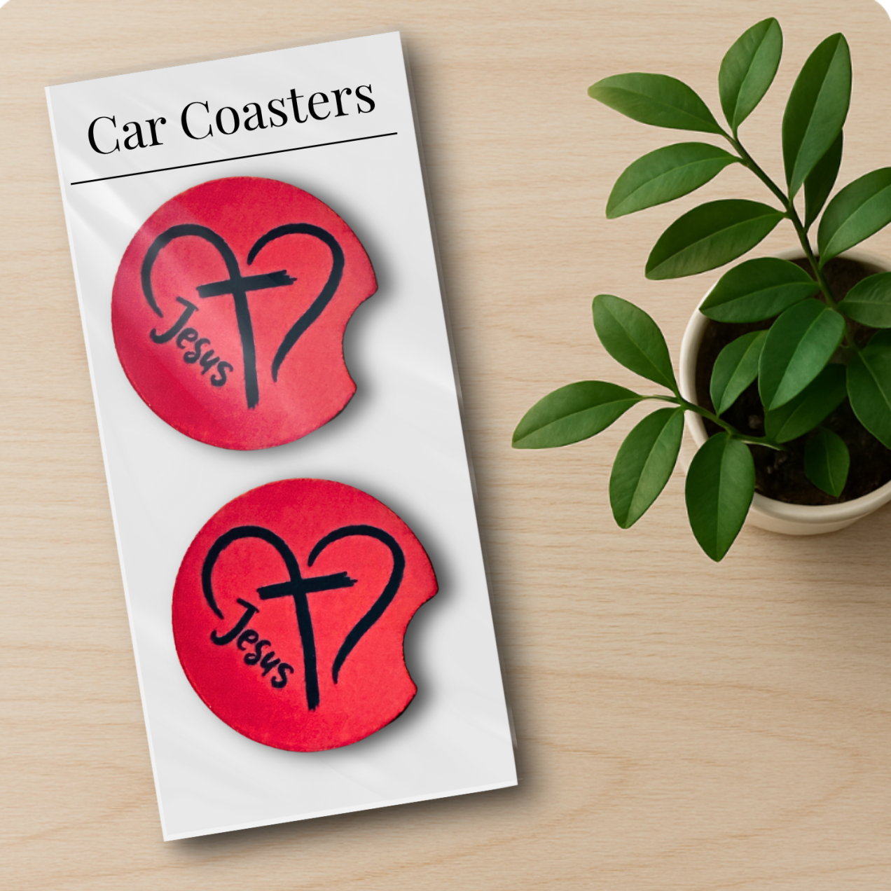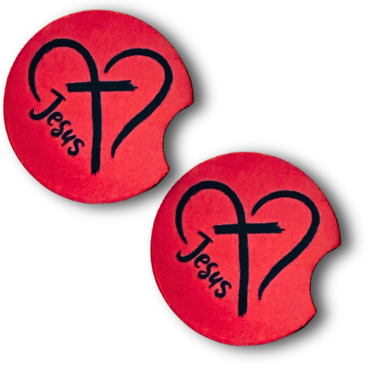 Jesus Heart Cross Christian Car Coasters – set of 2 red
