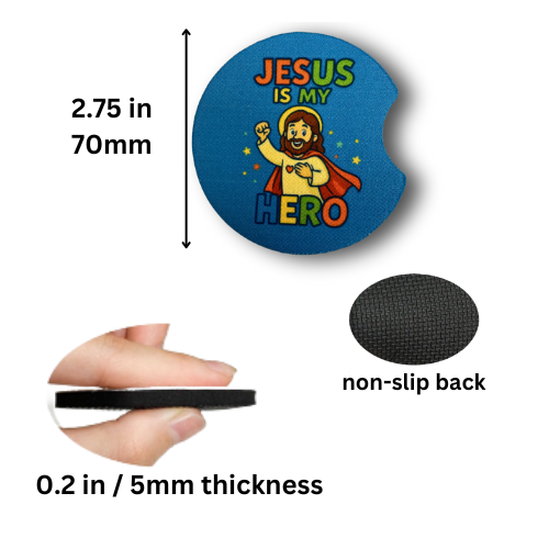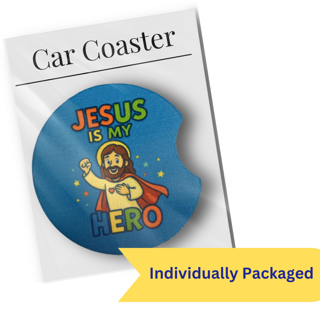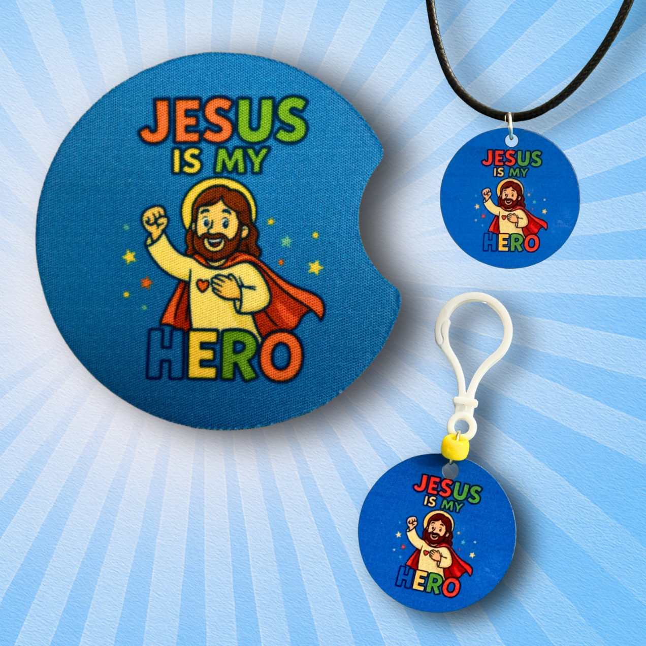 Jesus Is My Hero Christian Gift Set – Car Coaster, Necklace & Clip – Faith-Based 3-Piece Set