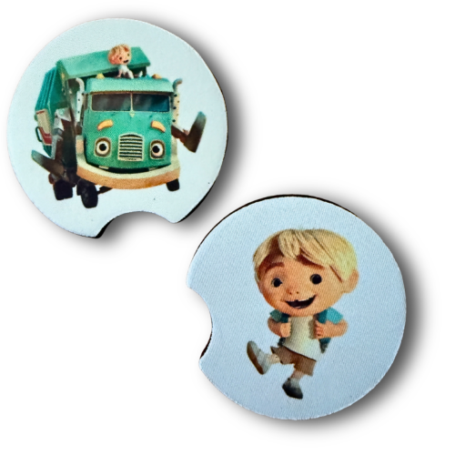1 Car Coaster – made of a neoprene material: (neoprene is like a thick koozie – or wetsuit material)