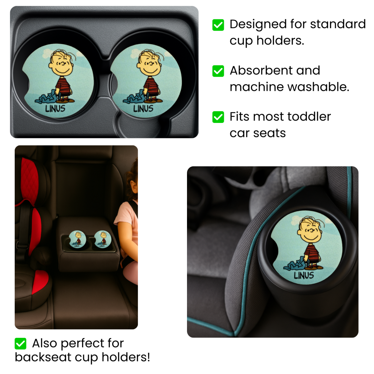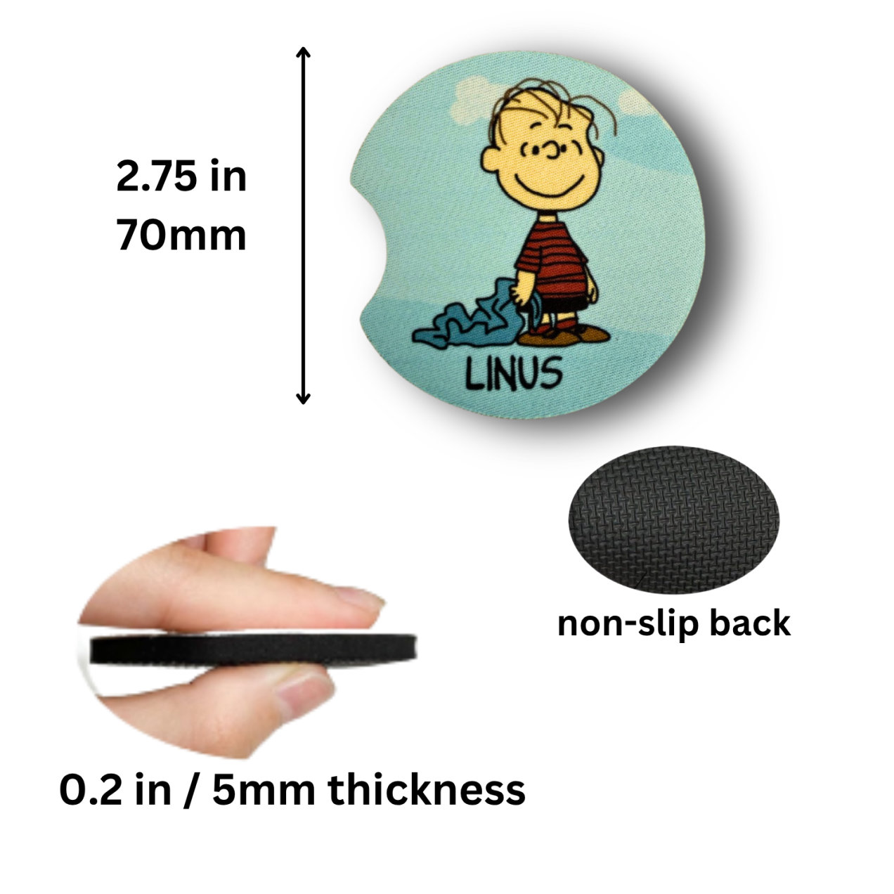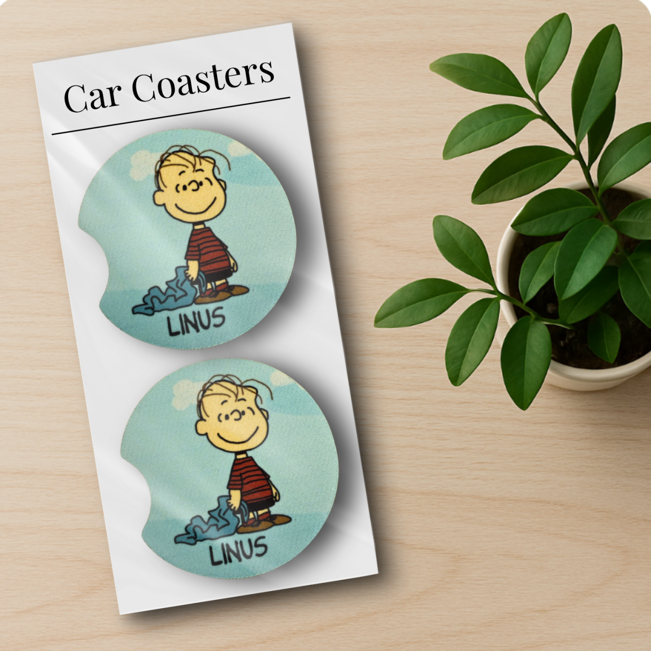 Linus & his blanket – Car Coasters – no more watery mess in the car cup holders