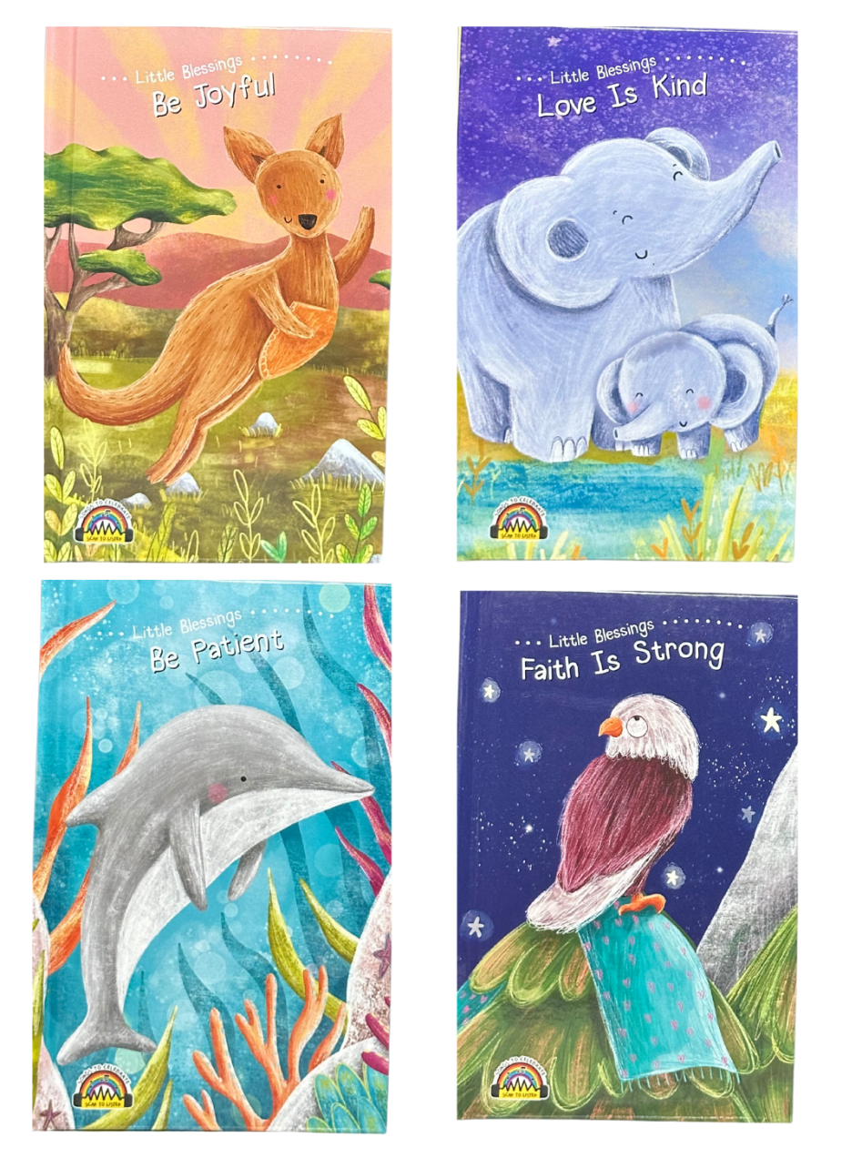 Beautiful illustrations and cute animals teach your little one how to appreciate God’s word. Each book of Little Blessings teaches Bible verses and virtues. 4 different blessings: Be Joyful, Be Patient, Faith is Strong, and Love is Kind.