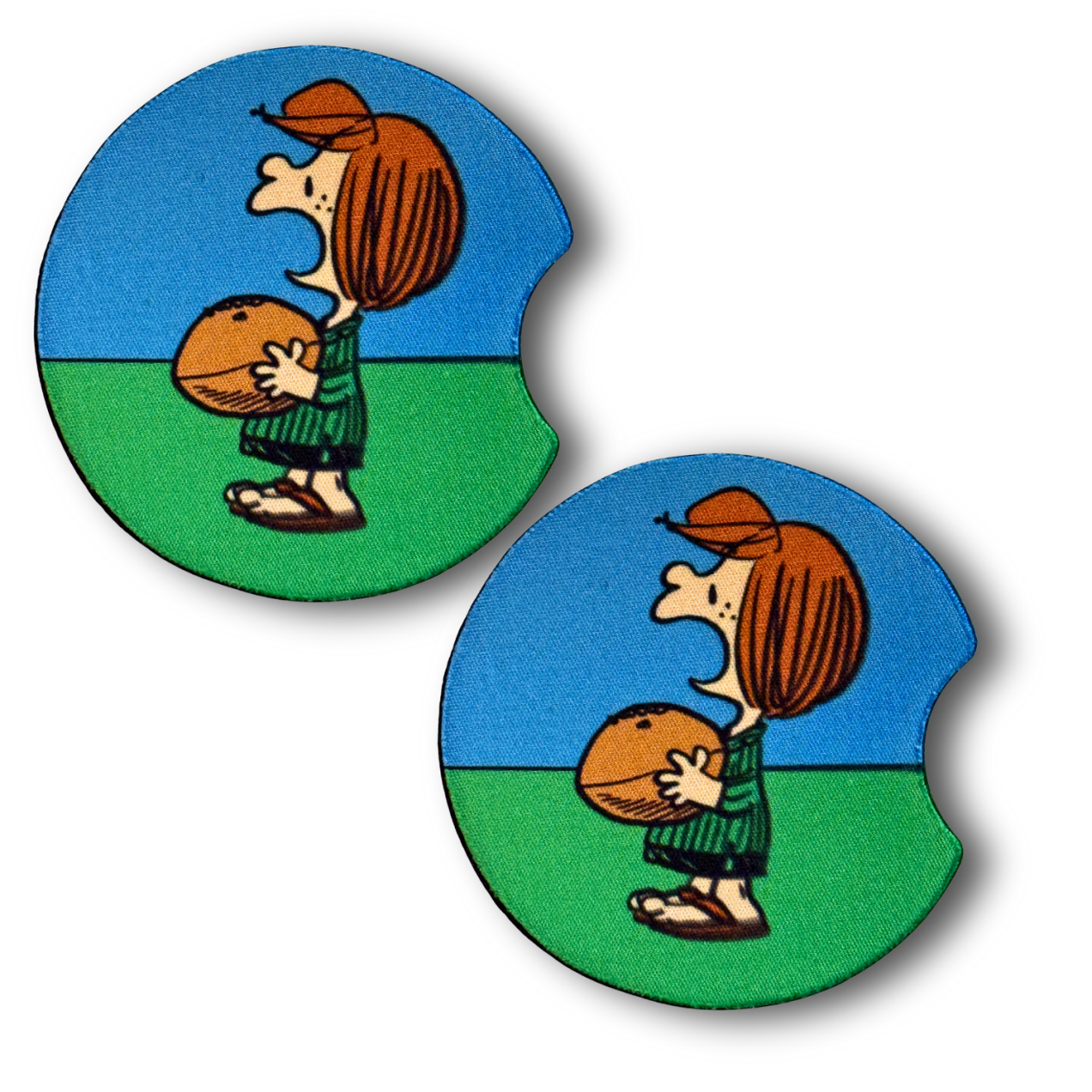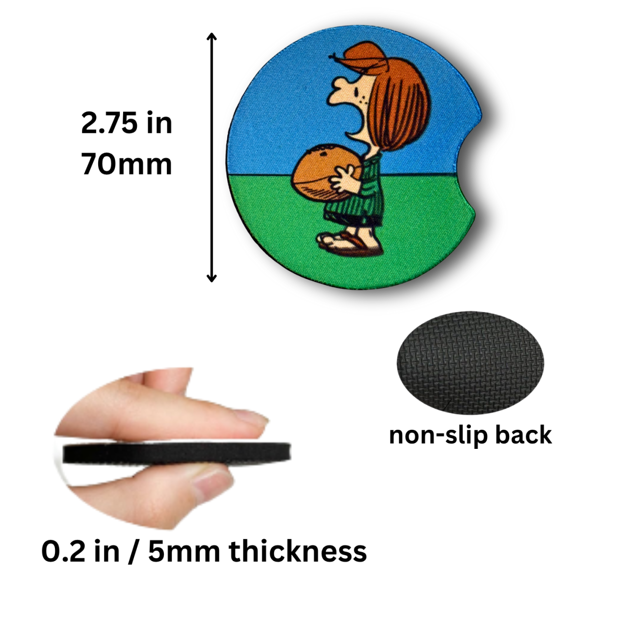 Peppermint Patty Football Car Coasters Set of 2 – Retro Cartoon Gift – Fun Car Accessories