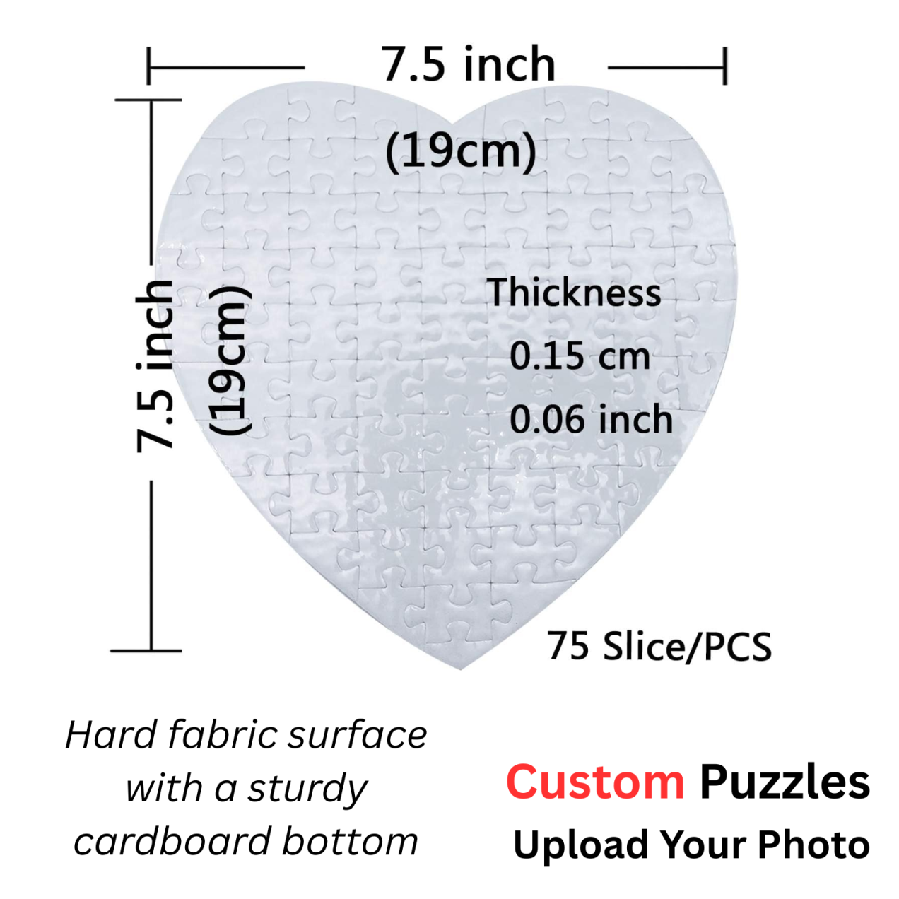 Heart Puzzle: 7.5″ × 7.5″ (19 cm), 75 pieces