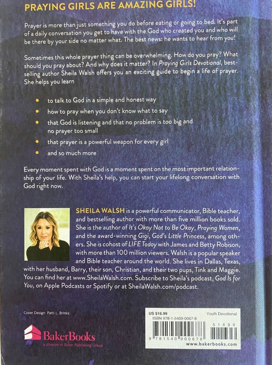 With Praying Girls Devotional, bestselling author Sheila Walsh offers girls ages 11 to 14 the tools to begin a life of prayer. She helps them learn