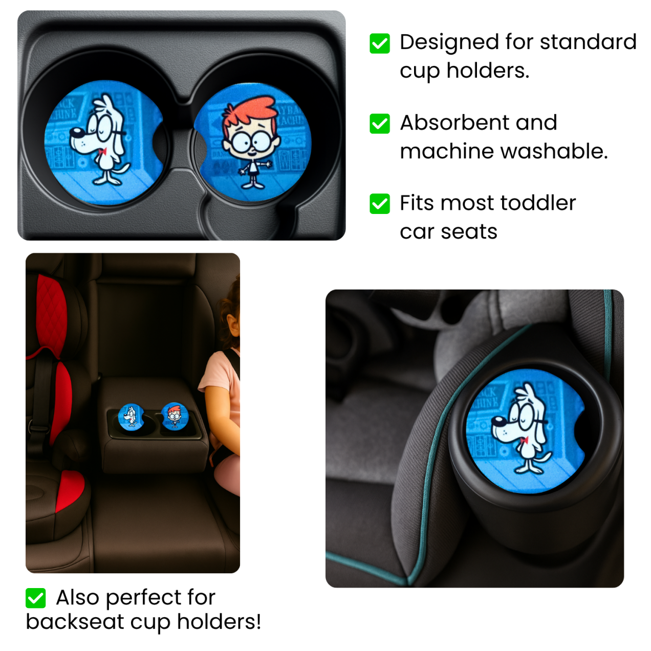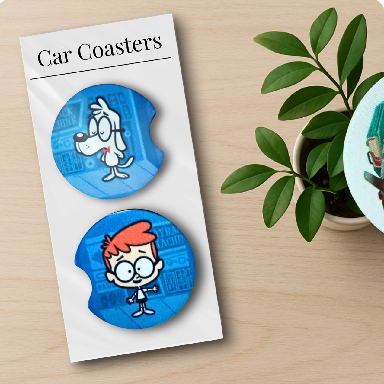 Sherman and Mr. Peabody retro Car Coasters – set of 2